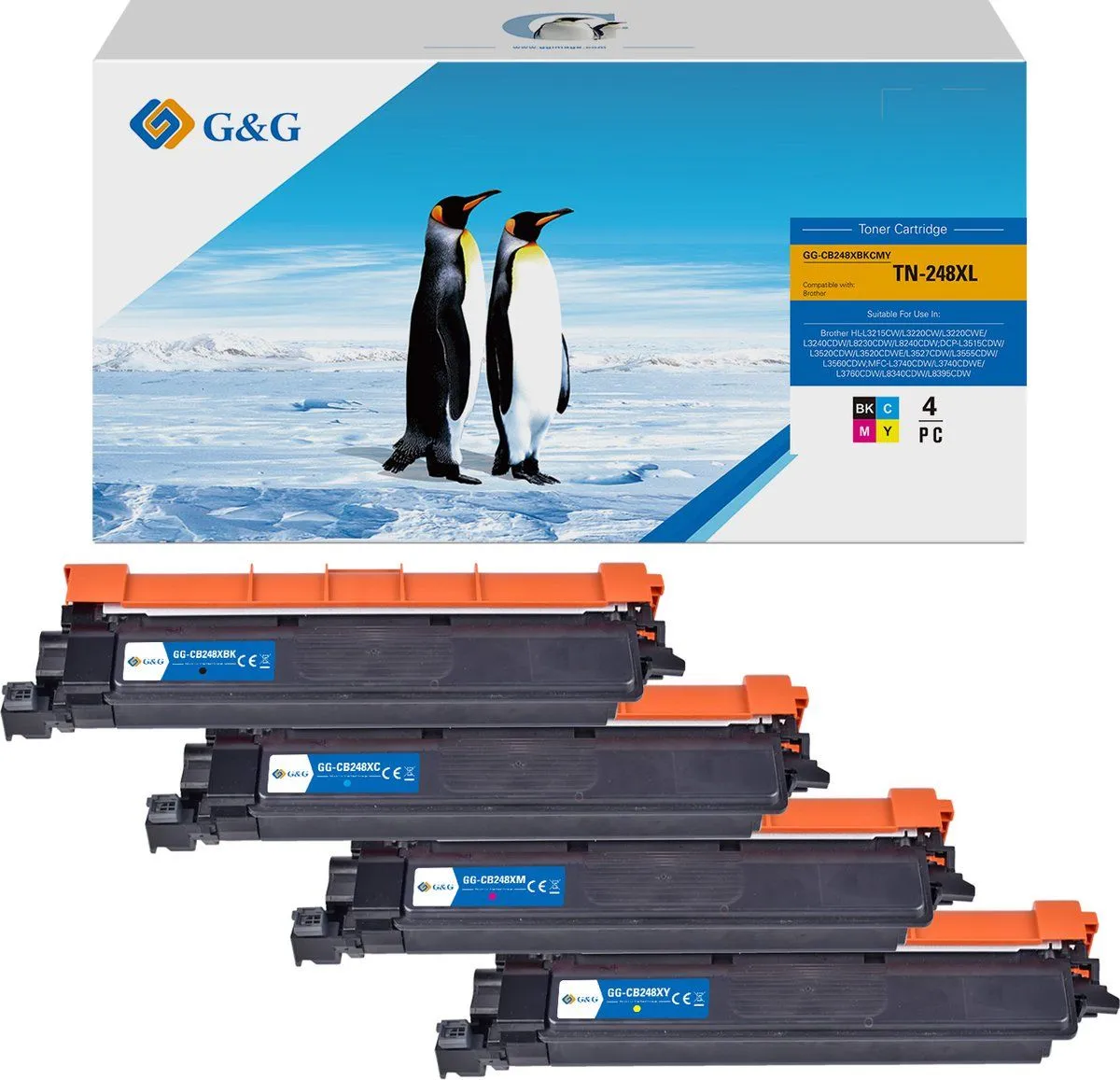 Pack de 4 toners Premium marque G&G compatible Brother TN248XLBK + TN248XLC + TN248XLM +TN248XLY – Noir + cyan + magenta + jaune